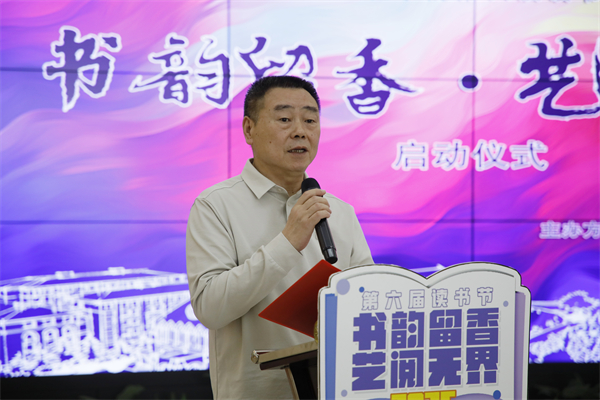 龚少平在启动仪式上致辞。他在讲话中预祝读书节取得圆满成功,并充分肯定了书香校园的建设成效。他表示,艺术启迪智慧,阅读滋养心灵,本届读书节主题充分彰显了best365“以美育人、以文化人”的办学特色和文化育人品牌,“艺术与阅读”相结合的这种浸润式育人模式,正在塑造武设人厚德尚美的独特气质。他要求各学院以读书节为契机,在书香校园建设中树立典范、激发活力,深化文化育人实践,希望全体师生共同推动书香校园建设,在文化传承中勇担时代使命,在书香与艺术的美好邂逅中收获成长与快乐。