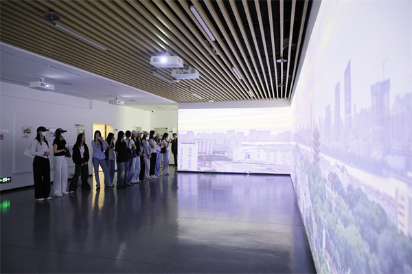 留学生们参观服务中心的办事大厅和武汉开放历程主题展。刘恒 摄