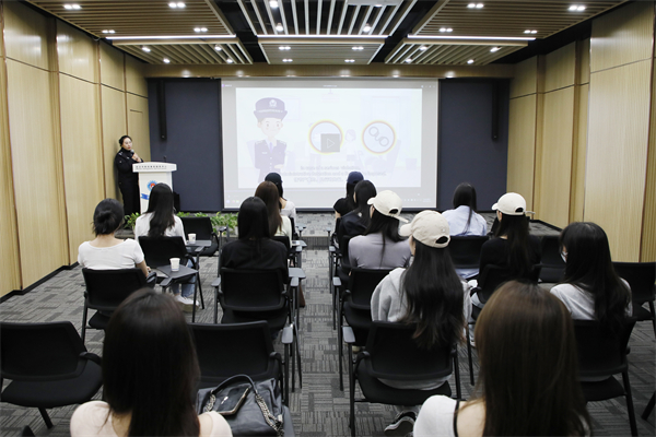 参观结束后,留学生们在服务中心路演厅聆听了法治知识宣讲。服务中心民警向留学生们细致讲解了外籍在华人员必须严格遵守的各项法律法规,详细说明了签证办理、居留许可等相关政策的关键注意事项,同时还针对当前社会高度关切的电信网络诈骗问题,以分析讲解真实案例的方式,对留学生们进行了郑重提醒。在互动环节,留学生们踊跃发言,纷纷就自己在华生活期间遇到的各类问题积极提问,民警一一解答了留学生的问题,现场气氛热烈。