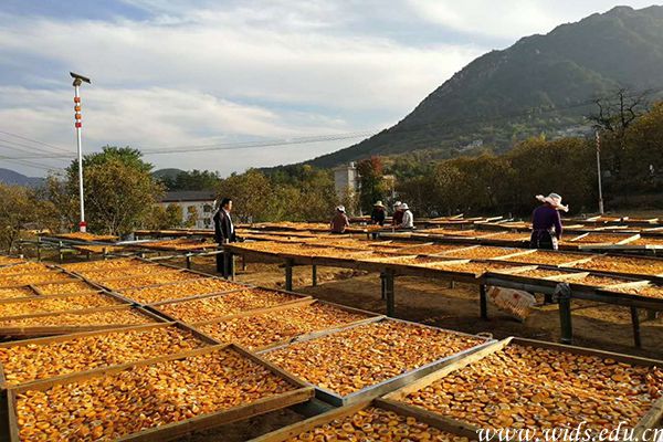 在全体扶贫工作人员的共同努力下,2020年金秋时节的錾字石村喜获甜柿大丰收,甜甜的柿子挂满枝头,硕果累累。趁着假期前来采摘者络绎不绝,游客们在采摘水果的同时也在乡间清新的空气里放松着身心。村里的甜柿加工车间也马力全开,工人们正操作设备加紧生产,柿子饼、柿子糖、柿子酒……村子里到处是一派红红火火的景象。