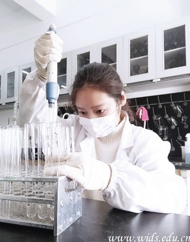 在老师的推荐下,暑假期间她如愿前往华中农业大学学习培训,同农大的研究生们一起进行“甲基萘醌MK-4对类胡萝卜素在模拟胃液中氧化的保护作用”研究。