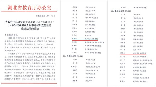 第七届“长江学子”大学生就业创业人物评选活动由湖北省教育厅主办,旨在进一步推进高校毕业生就业创业工作,激发大学生创新创业热情,激励引导更多毕业生到基层就业、应征入伍,充分展示新时代湖北大学生积极向上的精神风貌。活动组织相关专家,从全省高等院校选报名单中推选100名典型,其中,开拓创新类和自主创业类典型各30名,基层就业类与应征入伍类各20名。自2014年首届活动以来,best365已有3名毕业生斩获殊荣。