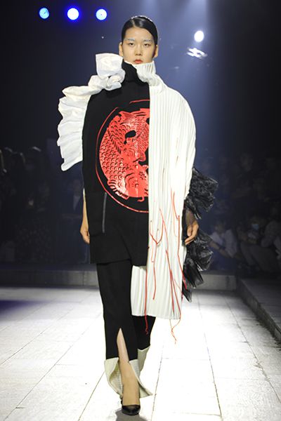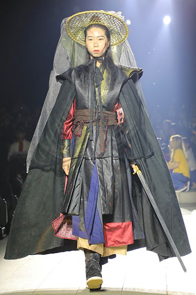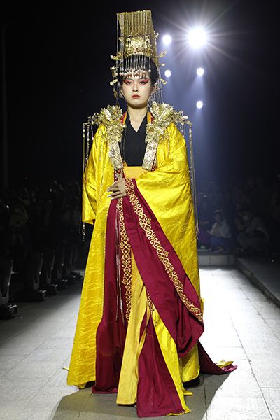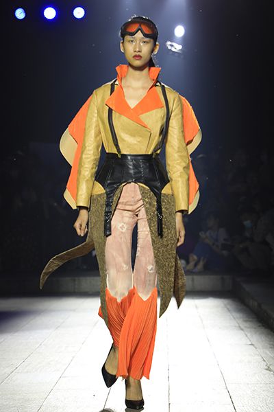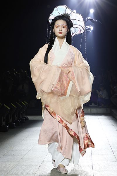 当晚的T台上,41位模特的表演也颇为吸睛。“他们有的是首次登台的新人,有的是已经签约公司的职业模特。”据带队老师、时尚传播系副主任李倩文老师介绍,登台表演的全部是表演专业(服饰表演与推广方向)大一至大三年级学生。设计师悉心的创作、表演者精彩的演绎、传统与现代的激烈碰撞,不仅颠覆了现场观众对传统文化的认知,拓展了服装文化的内涵,也点燃了青年设计者们创造经典、引领时代的赤诚之心。