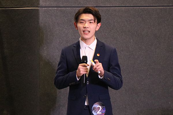 经过现场评分,6名选手脱颖而出,顺利进入第二轮“语妙天下”环节。晋级选手现场抽签,并根据抽到的题目进行两两pk。经过激烈的角逐,程兆辉、刘金钰、陈俊宇三位选手成功跻身最后一轮。第三轮比赛,三位选手以“榜样”为题作即兴演讲。最终,程兆辉同学凭借稳健的台风、标准的发音和出色的语言组织能力,以94.66分的好成绩夺得本次比赛的冠军。
