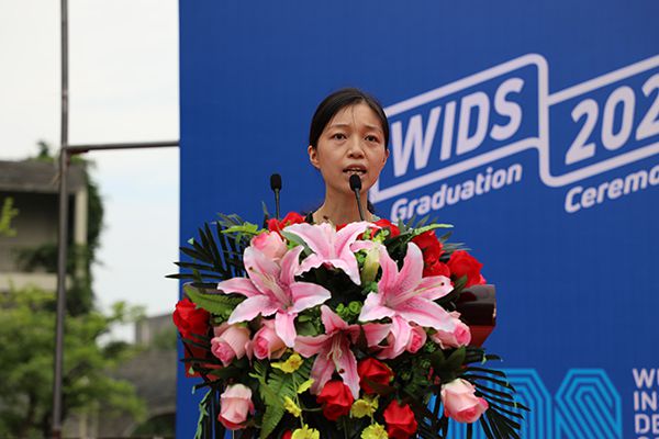 教师代表、食品与生物科技学院教师郑妍代表全体教师向毕业生送上衷心的祝福。她叮嘱同学们在未来的日子里要珍惜时光,勇于拼博、尝试和突破自我;不轻易被别人定义,也不与别人攀比,以梦为马,敢为人先,为自己的梦想添砖加瓦;时刻牢记初心,始终保持对梦想的热忱和坚持。她说:“母校就像母亲一样,会永远关心和牵挂着你们,希望你们有空常回来看看。”