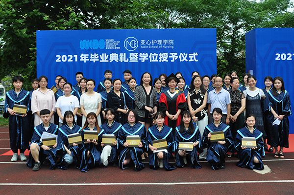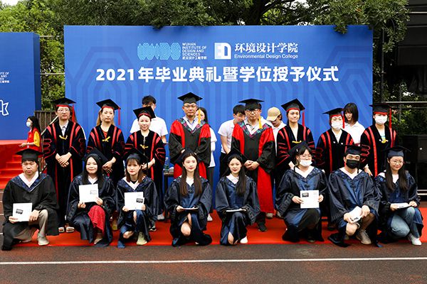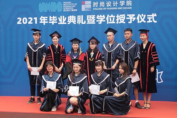 随后,全体校领导、各学院负责人为2021届毕业生依次行拨穗礼、颁发毕业纪念册并合影留念。