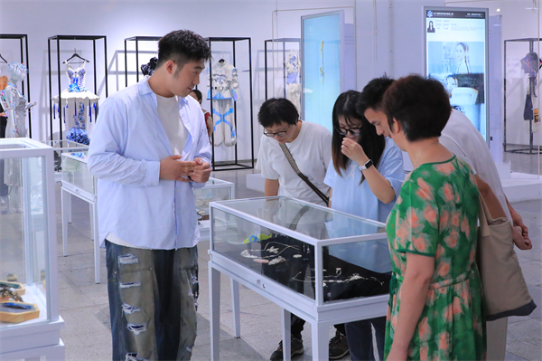 与会人员参观学校优秀毕业设计作品展、走访各二级学院。谢逸涵 摄