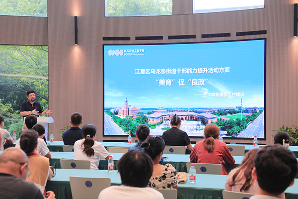 本网讯(通讯员 余云云 记者 武建何)6月10日下午,江夏区区校合作发展促进中心、乌龙泉街道办事处干部及村社区代表来校开展“‘美育’促‘良政’——艺术赋能美丽乡村建设”专题活动,通过案例分享与实地参观相结合的形式,交流学校艺术设计成果在美丽乡村建设中的创新实践。学校产学研中心、党委学生工作部、校团委及相关学院负责人参与了交流活动。