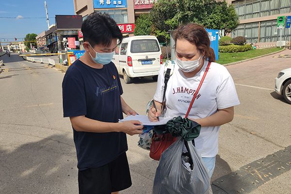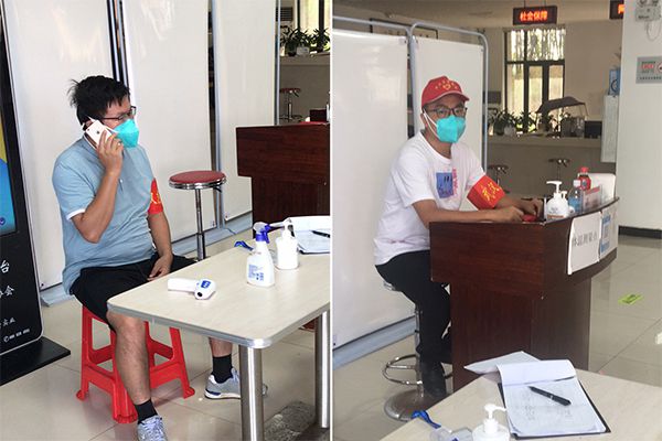 下沉党员们开展社区值守工作。