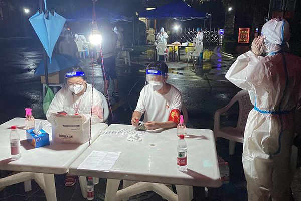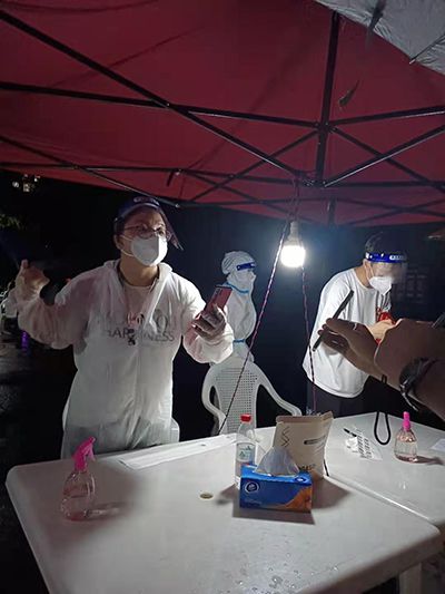 8月11日晚,best36513名党员下沉金龙社区参与核酸检测志愿服务。