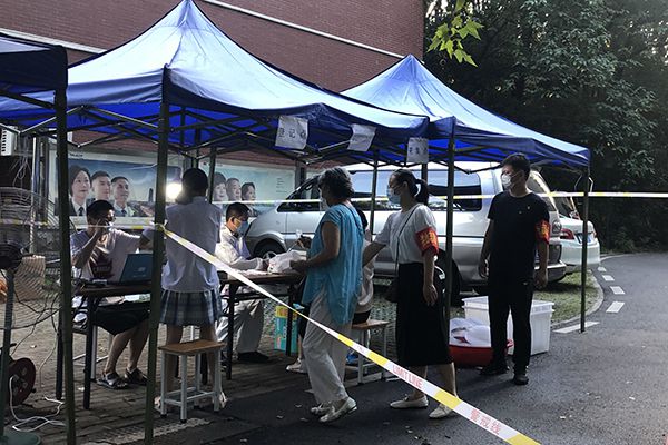 8月5日清晨5点多,商学院党总支书记胡紫玲便来到华中农业大学东社区核酸检测点,与社区工作者、医护人员和志愿者们一起布置采样点。不一会儿,检测点就排起了长队。为排除因采样产生新的传染风险,她与10多名志愿者和社区工作人员分工协作,一部分人维持现场秩序,提醒居民带好口罩、保持间距,另一部分人则有条不紊地登记居民的基本信息。他们还为老年人和孕妇等特殊人群开通了绿色通道,以减轻他们因长时间排队带来的身体不适。令人欣慰的是,社区居民都非常配合检测工作,原计划3天的检测缩减到2天完成。