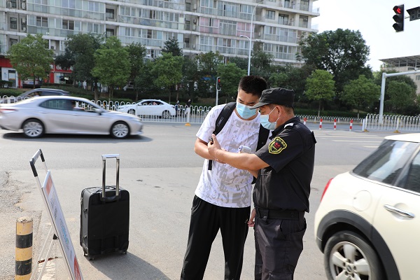 为了避免返校学子聚集,学校为在南大门和东二门,分别开辟了3组进校通道。同学们在工作人员引导下,间隔1米以上,有序出示行程卡、测量体温、核实身份信息和核酸报告后进入校园。现场师生配合默契,有条不紊,秩序井然。