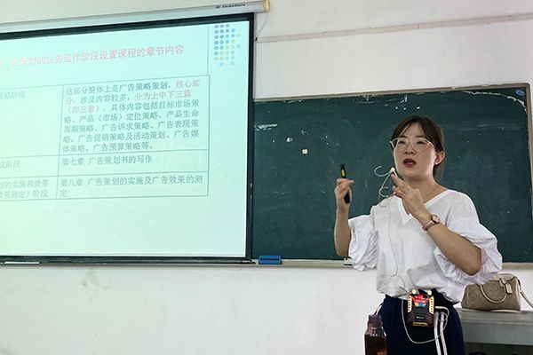 8点,跟随着上课同学,公共艺术学院广告1902班郭微同学快步走进教室,等待她的新学期第一课是《广告策划》。“还是那个熟悉又可爱的尚研老师,还是那种独特的讲课手势。”郭微同学落座后,自觉地将手机静音,等待上课铃响。趁着间隙,她与同学说道,“听说因为疫情原因,今年老师们准备了两种预案,他们真的很负责任。”