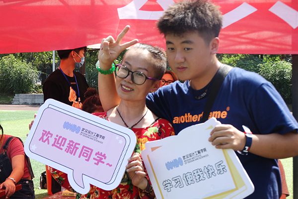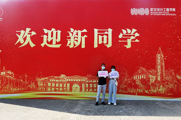 “欢迎新同学”走进校园,矗立在得一堂广场上的巨幅欢迎词跃入眼帘,新生们开心的在欢迎词下合影留念,记录人生新起点。