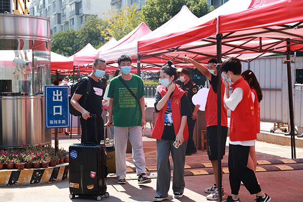 测温扫码,新生有序进入校园。高心雨 摄