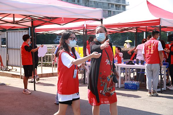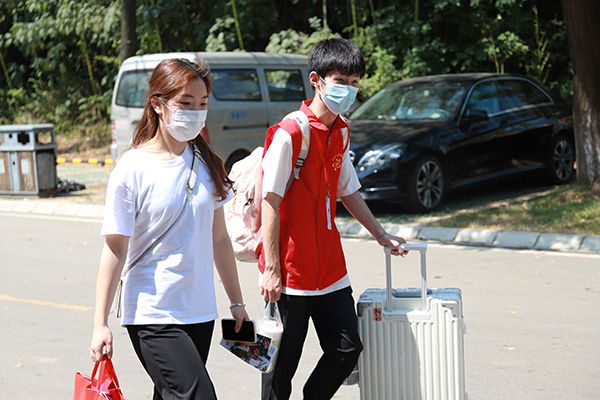 有新生的地方,总少不了贴心的“红马甲”,他们有的在帮新生搬运行李,有的在为家长们引路。“希望我们的热情服务,能让学弟学妹们少一分紧张,多一份安心。” “红马甲”的一员,来自环境设计学院2019级的毕圣淇同学表示,自己很开心能通过迎新志愿服务,让新生及家长们第一时间感受来自学校的关心和温暖。