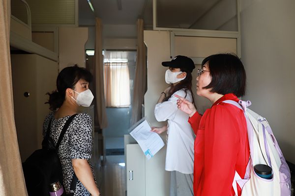 “寝室有热水,有独立卫生间,还有空调和电子门锁,条件太好了。”走进新生寝室,成龙影视传媒学院数字媒体艺术专业新生姜雯兴奋地表示,“我是武汉本地人,今天是家里人自驾送我来学校的。对学校的第一印象很不错,建筑很有特色,一进来还有学姐帮忙搬东西,住宿条件也很好,完全符合我的想象啊!希望这四年在学校可以慢慢实现我的梦想,做自己喜欢做的事情。”据了解,今年暑期学校克服疫情封控重重困难,对学生寝室、食堂等重点设施进行了大量翻新和改造,以期让同学们住得更加舒适顺心、吃得更加卫生安全。