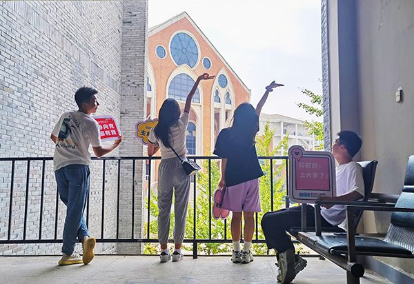 新同学们在校园各处打卡拍照。李丹丹 摄