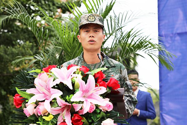 承训教官代表胡佳乐讲话。刘恒 摄
