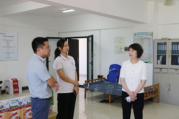 本网讯 7月20日上午,学校党委书记王长华、校长龚少平、董事魏彬、副校长张丽娟等校领导率队,前往慰问暑期坚守在工作一线的教职工,为他们送去“暑期清凉”与“暖心关怀”。