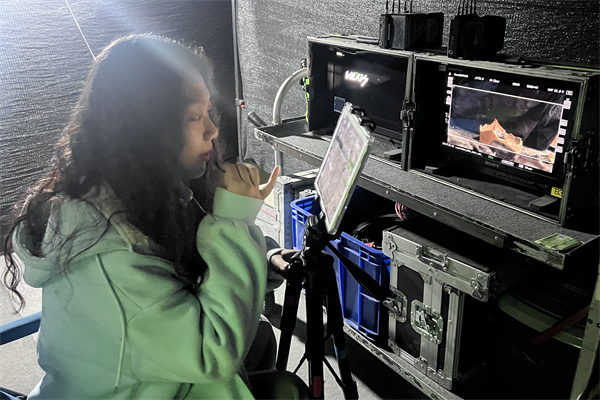 “看到大银幕上播放着自己拍摄的素材时,内心充满了成就感。”戏剧影视美术设计专业2202班孙照翔在剧组担任视效助理,主要承担记录数据、拍摄素材以及贴定位点等工作,他对学院安排的这次片场实习满怀感激之情。工作之余,他还不忘“偷师”自己的本专业:观察美术组老师如何布景,学习灯光老师如何营造光影氛围,聆听导演与摄影指导如何探讨画面构图……“旁观他们工作,就像上了无数堂免费的实战课。”这让他对电影拍摄有了更加立体、真切的认知。