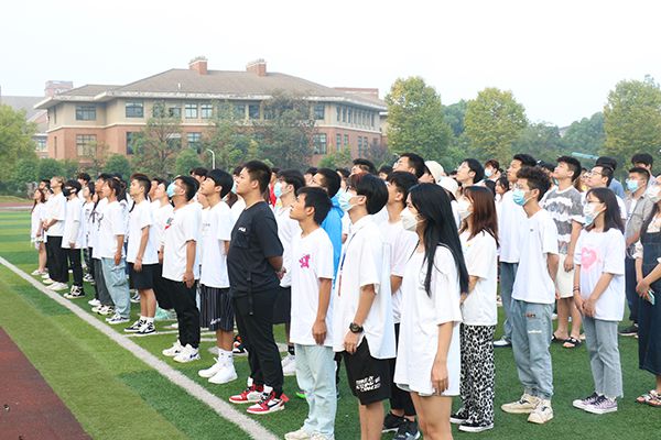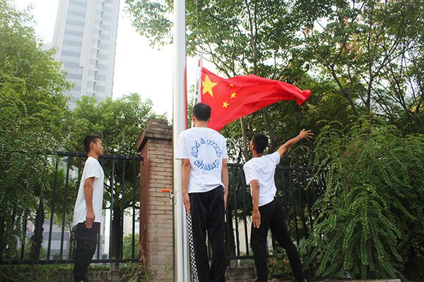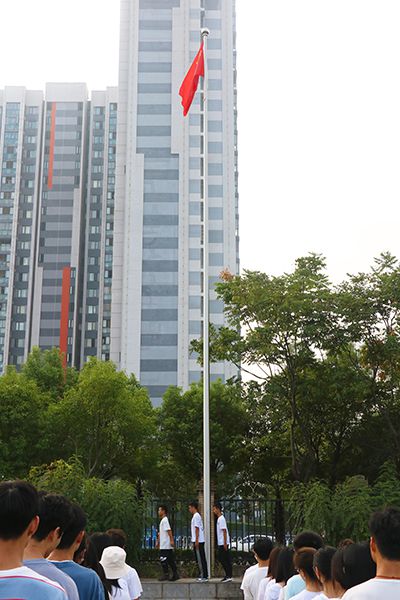 上午7时30分整,全体师生肃立。由退伍军人学生及学生会干部组成的国旗班,队员们踏着整齐划一、铿锵有力的步伐,护送鲜艳的五星红旗走向国旗台。气势磅礴的《义勇军进行曲》奏响,五星红旗冉冉升起。现场师生身挺如松,齐唱国歌,共同感受这庄严神圣的时刻。