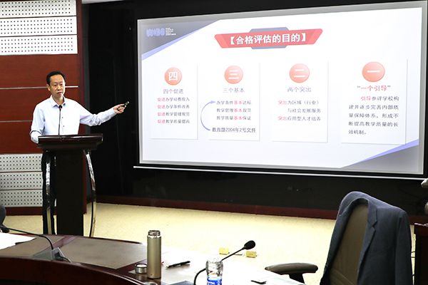 副校长徐拥华作评建工作实施方案解读学习报告。刘恒 摄