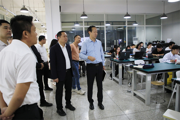 会前,在徐拥华等领导的陪同下,梁明一行还先后参观了各学院实验教学中心、创意设计工坊等实践教学场地,详细了解学校“作业-作品-产品-商品” 四阶递进的教学理念与实践育人模式。