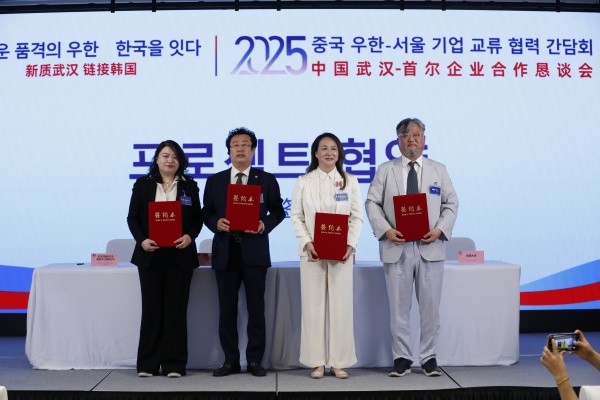 武汉代表团在恳谈会上推介武汉投资发展环境,与大韩贸易投资振兴公社、SK致新株式会社、IBK银行、韩国楚商联合会等中韩企业机构代表,围绕经贸、物流、氢能、文化等领域合作开展深入交流并见证了6个中韩合作项目签约。