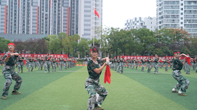 学生军事训练特色科目展示现场高潮迭起,女子匕首操、男子军体拳、女子破锋八刀和模拟战术表演轮番上演。“杀!杀!杀!”女子方阵率先登场,她们头缠红巾,手握匕首,眼神坚毅,弓步前刺,快且精准;转身斜劈,凌厉生风,一招一式,刚毅果敢。紧接着,男子军体拳霸气开打,弓步冲拳,迅猛刚劲;穿喉弹踢,直击要害;马步横打,势大力沉,尽显铁血风采。转瞬间,女子破锋八刀轰然“杀出”,“铿锵玫瑰”们步态坚实,出刀迅猛、收刀利落,刀影闪烁间飒爽豪迈,引得场外喝彩声不断。