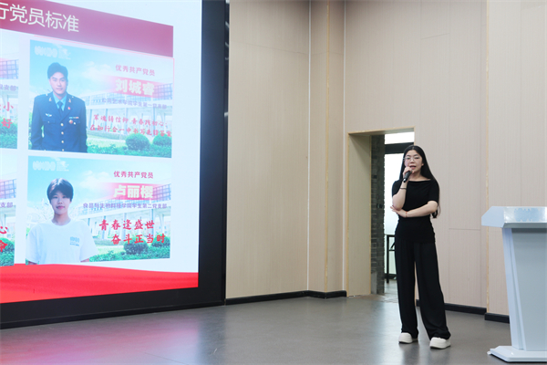 文化创意管理学院辅导员、学生第二党支部书记鲜于开悦老师为学院新生作入党启蒙教育。
