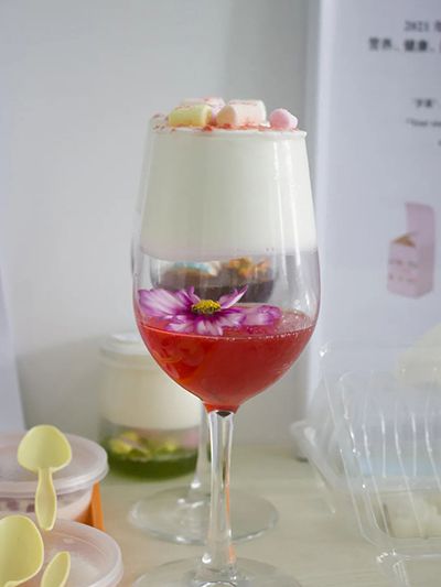 轻悦茶味小组将低糖、低卡、低负担养生茶与酸奶有机融合,二十四节气盲盒包装,瞬间勾起师生们的好奇心;浮云花海酸奶集颜值与美味于一身,奶香浓郁,口感细腻爽滑,产品形式新颖,自带流量,具备成为网红产品的潜力;“达雪”民族系列酸奶,将酸奶与地域优质食材有机结合,让食者感受到淳朴自然的治愈;“清芳小馔·花酪”古风系列酸奶采用慕斯制作方法,将花酱与益生菌酸奶结合,赋予酸奶花馔传文化内涵;“咕叽”酸奶摇摇乐系列酸奶零糖、零脂、零卡,结合可摇的食用方法,在获取营养美味健康的同时又增加无穷的互动感和趣味感;“YUMZO雅滋”中药材系列养生酸奶,将中药的四性五味融入到酸奶中,药食同源,健康养生;仙女没有烦恼系列酸奶包含仙娥映媚、仙尘益友、仙绿醋柳、仙枣惜缘等改善女性健康的酸奶型产品,为仙女们的健康保驾护航;“益”生风味发酵乳系列酸奶采用多种益生食材,富含丰富的维生素,能调节肠道菌群的平衡,提高机体免疫力;透花君糍小组结合古法透花糍的做法,参考传统美食糖葫芦元素,将酸奶做成精致的点心,构思巧妙,带给食用者丰富的味觉体验;奶溶蔬1+2组,在传统酸奶溶豆的基础上配以蔬菜元素,并添加海藻糖,富含丰富健康因子,材料新颖,入口即化。