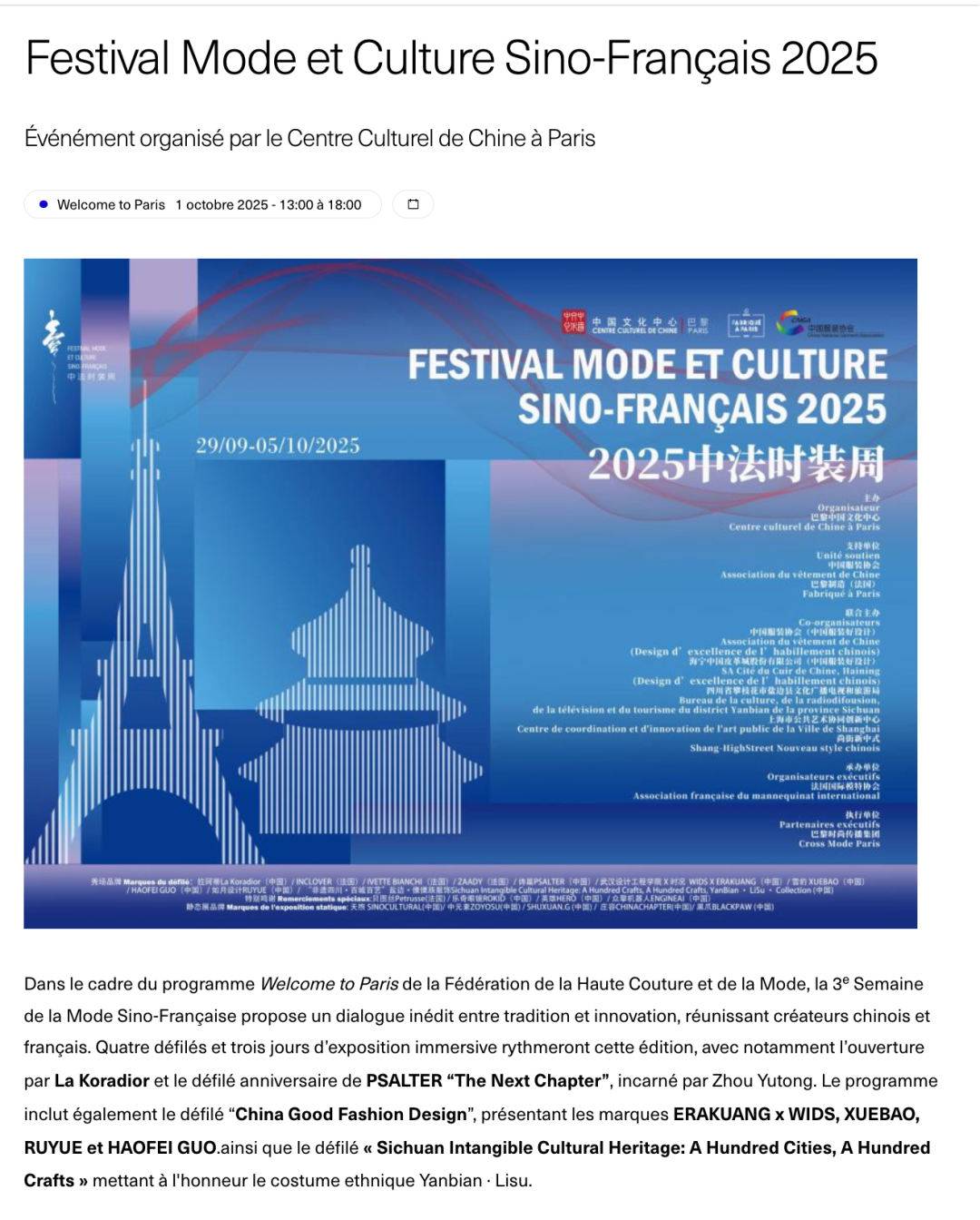 本次联合发布秀吸引了逾200位国际嘉宾莅临现场,包括中国纺织工业联合会、法国时尚联合会代表,以及《Vogue》法国版主编、《L'Officiel》时尚总监等业界权威人士。作为巴黎时装周“Welcome to Paris”官方项目的重要组成部分,中法时装周以“文化共鸣·创新共创”为主题,持续推动中法时尚产业深度对话。
