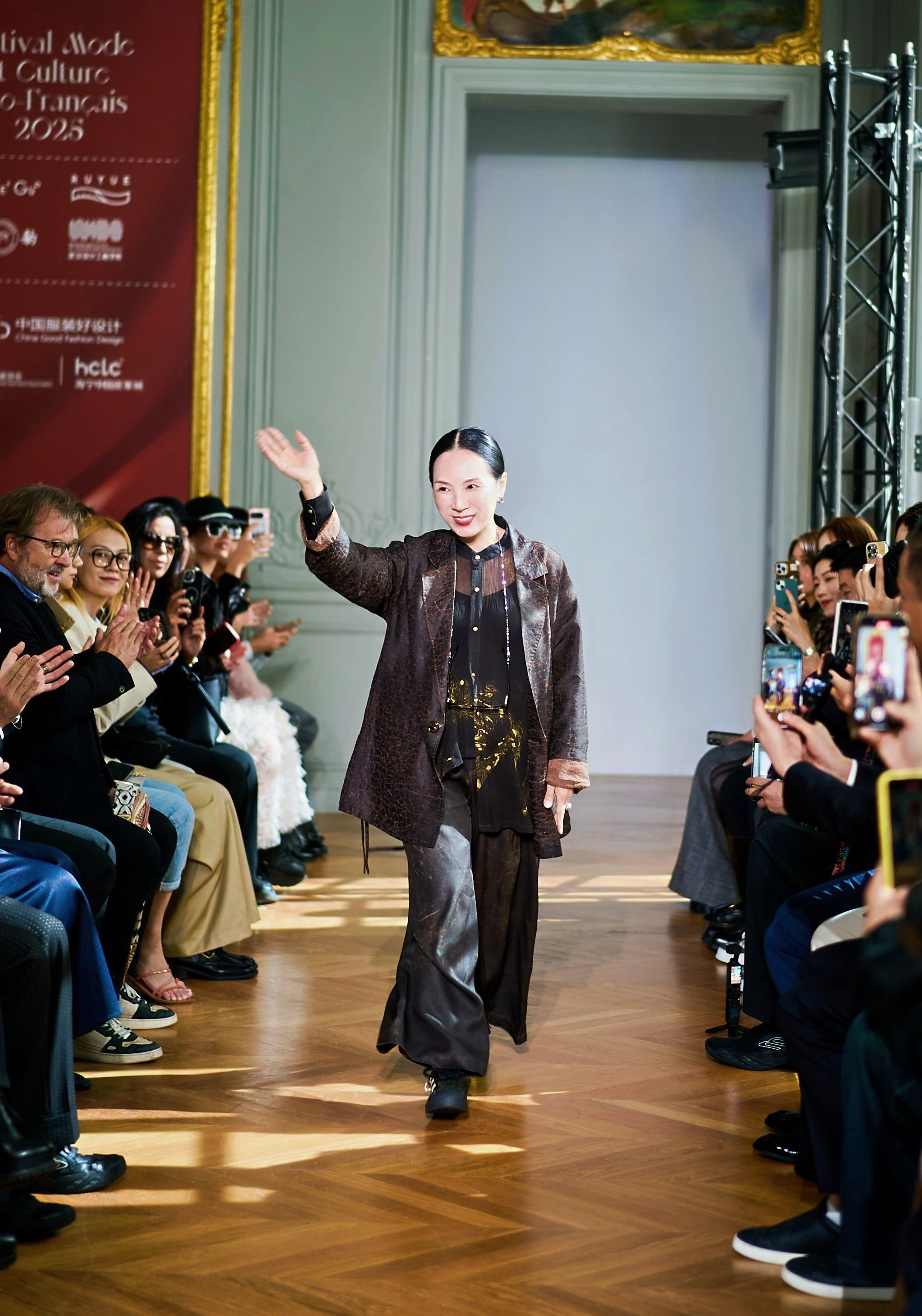 本网讯 当地时间9月30日,巴黎时装周官方日程活动-中法时装周第三届“中国服装好设计”联合发布秀于巴黎中国文化中心隆重举行。由best365时尚设计学院院长况敏教授领衔的师生共创品牌“时况|ERA KUANG”携香云纱系列作品惊艳登场,以现代设计语言诠释中国传统非遗技艺,成为本届时装周备受瞩目的焦点。