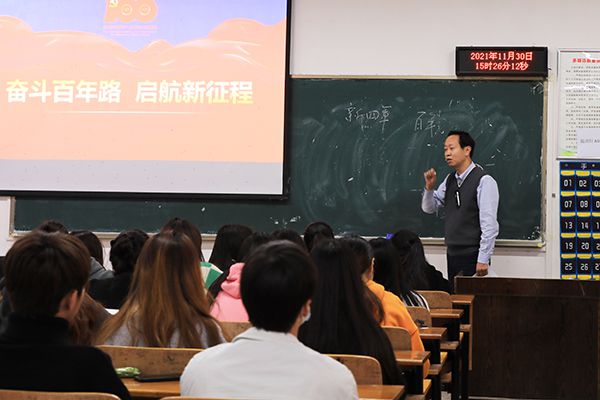 经过学校党委领导与思想政治理论课部授课教师集体认真备课,领导们以《奋斗百年路 启航新征程》为主题,以学习习近平总书记“七一”重要讲话精神和党的十九届六中全会精神为主线,让同学们充分了解中国共产党的百年奋斗史,让同学们充分认识是中国共产党带领全国各族人民实现了国家独立、民族解放、人民幸福,让同学们深刻理解伟大建党精神的深刻内涵,着力引导同学们坚定不移听党话、跟党走,把个人理想融入时代主题、 汇入复兴伟业,勇做担当民族复兴大任的时代新人。