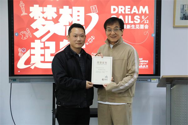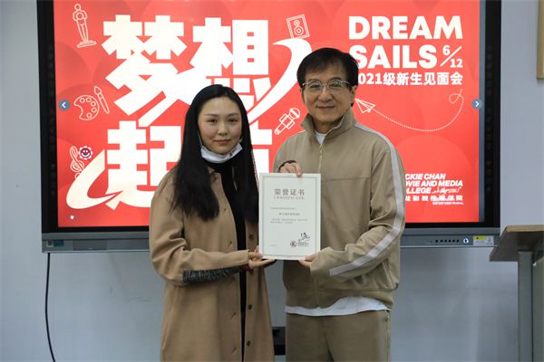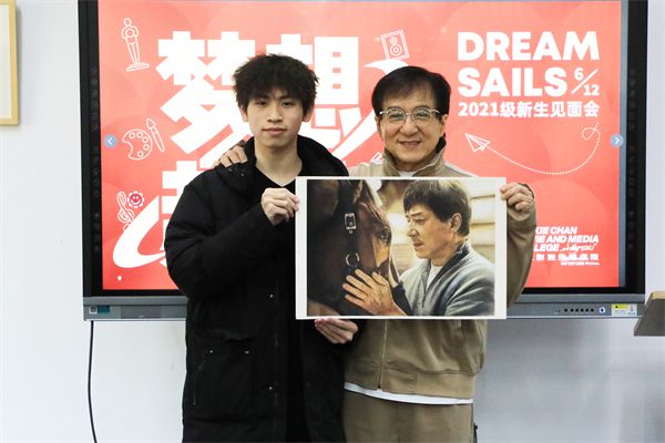 本网讯(记者 骆金凤 陈雪琪 梁咏琪)12月6日,“梦想起航——成龙影视传媒学院2021级新生见面会”,成龙院长如约而至,走进课堂与新生亲切互动、与教师交流座谈。