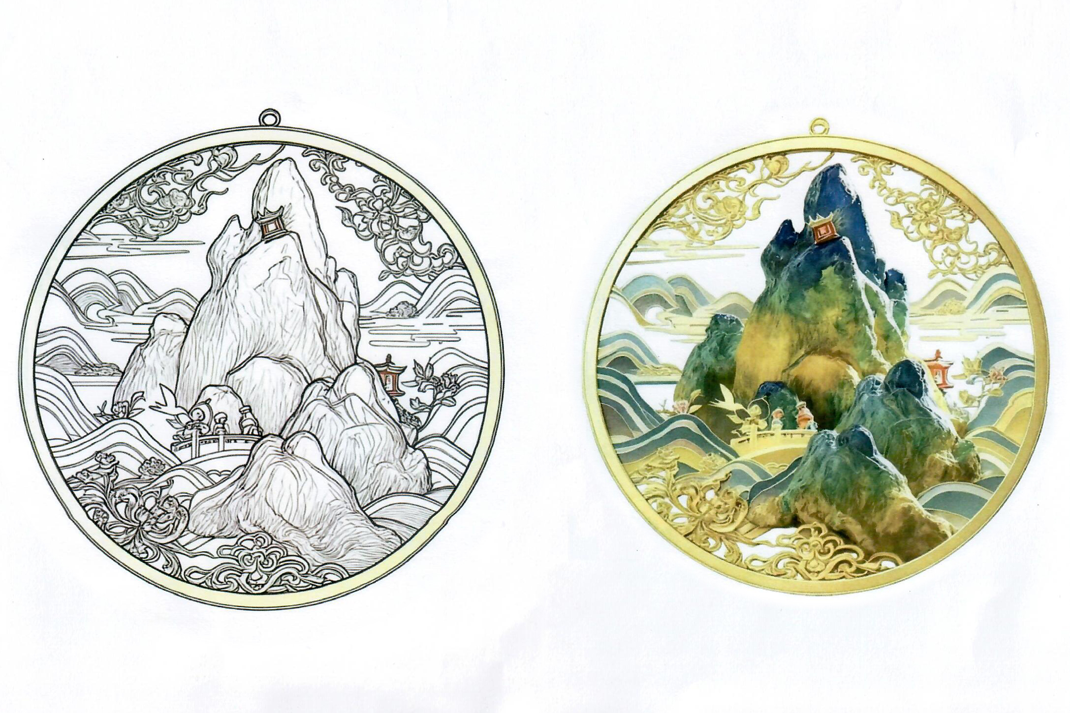 何金涛同学《青山绿水 金缕云纹》徽章设计。