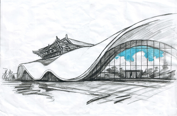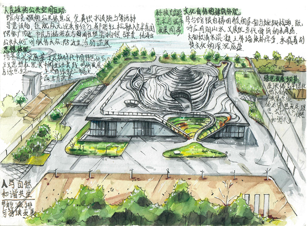 左华华同学作品《曲幕映天:琴台美术馆的时空褶皱诗》。