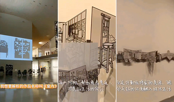 严凤艳同学短视频作品《一件作品的双重解读——从〈室内〉窥时代变迁:在旧物中读懂奋斗的力量》截图。