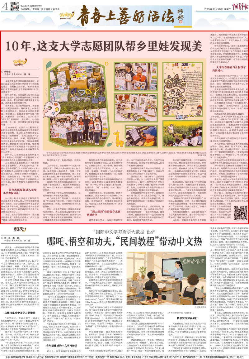 五色阳光志愿服务队获评“湖北省本禹志愿服务队”,入选武汉市年度“十佳志愿服务项目”。其开展的“乡村·艺术·家”志愿服务活动将学生美术作品转化为文创产品,形成可持续的帮扶循环。同时,服务队创立了“周三邮局”,用大学生和小学生互通书信的方式鼓励陪伴乡村儿童,弥补乡村留守儿童缺失的情感陪伴。