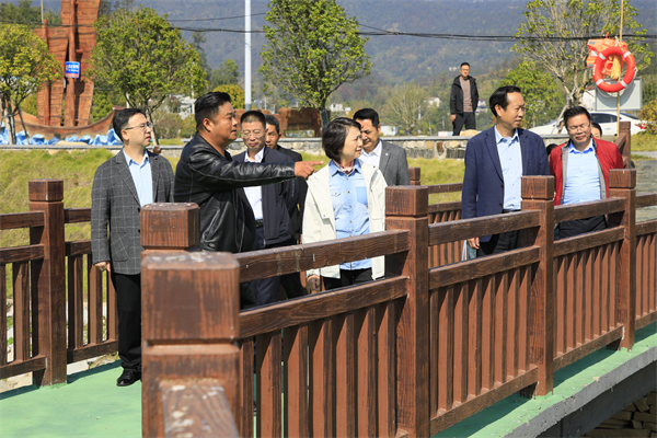在当地领导的陪同下,王长华一行深入调研了碧水湾村近年在产业发展、人居环境整治、基础设施建设等方面取得的新进展、新成效,实地查看了美丽乡村项目、村际公路建设、湖泊保护治理工作,并就项目规划、运营模式、市场效益以及带动村民增收致富的具体情况进行了详细了解。
