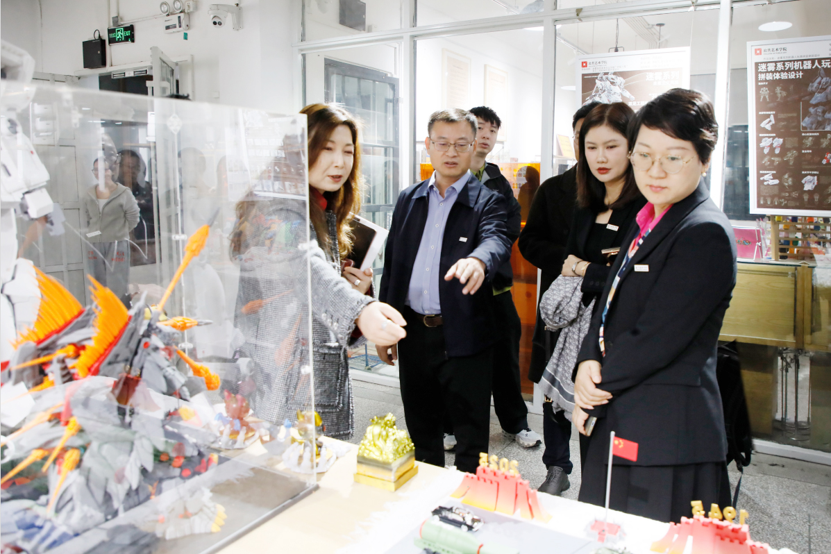 座谈会结束后,在王长华等领导的陪同下,谭勇一行实地考察了学校成龙影视传媒学院、公共艺术学院、时尚设计学院、环境设计学院等教学场所。