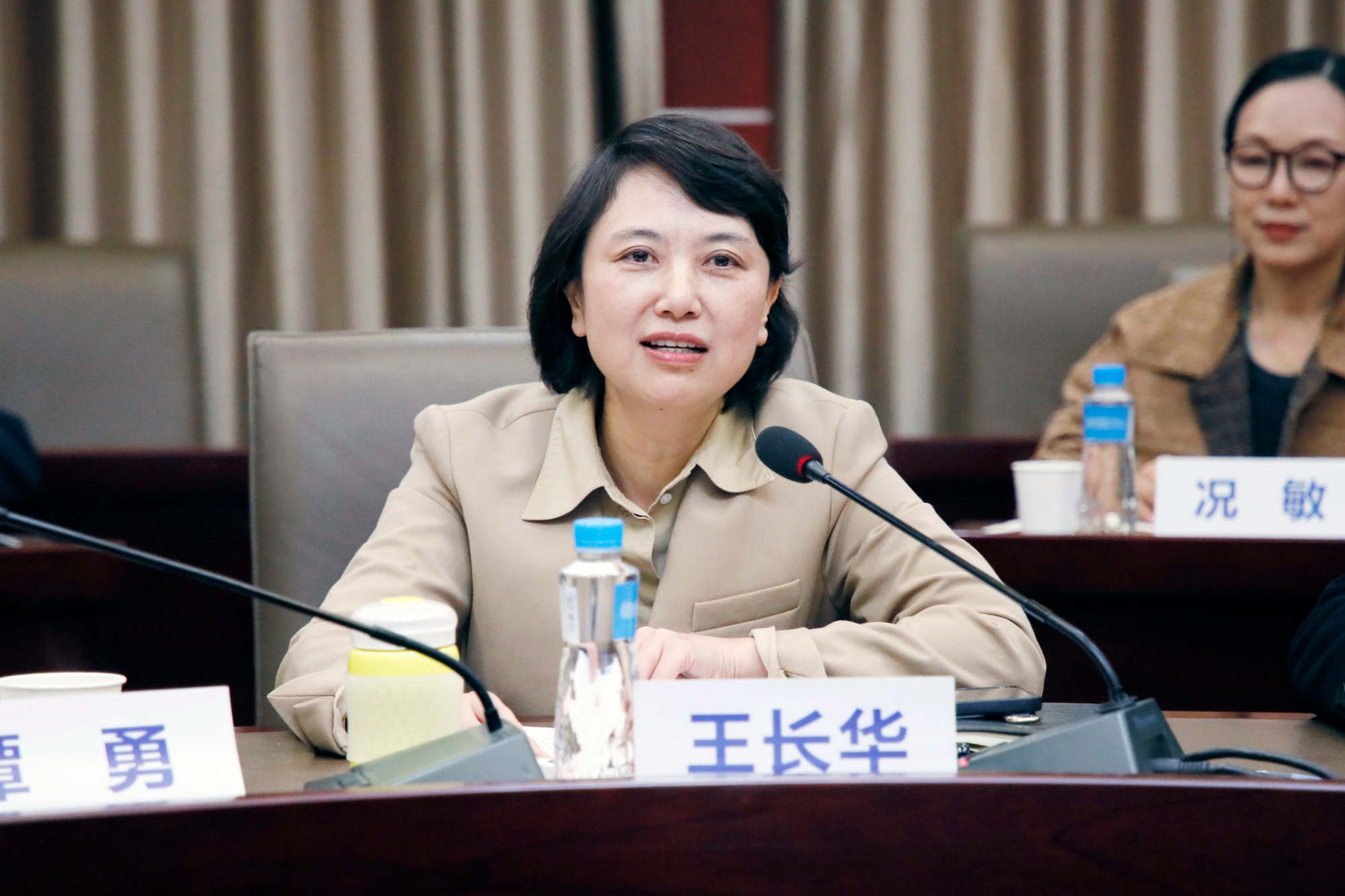 座谈会上,学校党委组织部、教务处、科技处负责人具体介绍了学校党建工作、教学科研等情况,成龙影视传媒学院汇报了学院在探索影视人才培养“新生态”方面的举措和成果。