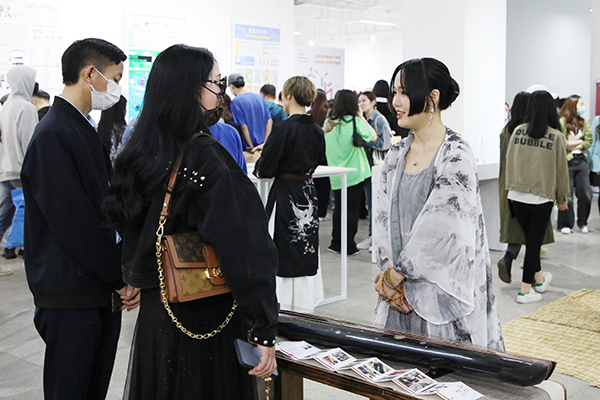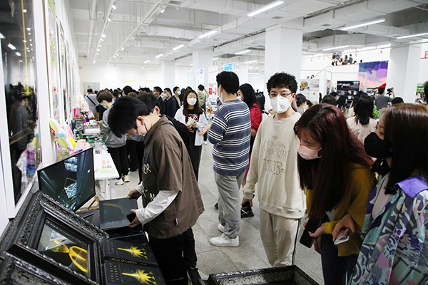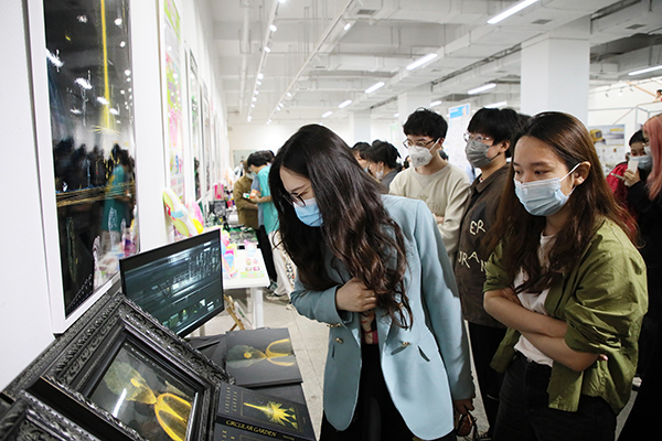 “古琴表面的大漆,它的干燥速度非常慢,我们上漆的时候只能薄薄的一层一层叠加。虽然很消耗时间,但是只有这样做琴的表面才不容易凹凸不平。”公共艺术学院优秀毕业作品《彰髹技法在古琴装饰中的应用——以“不忘”为例》前挤满了少了古琴爱好者。创作者工艺美术专业方向李盼同学介绍说:“古人云,夜观北斗而知季节,时运兴替。在中国传统文化中,北极星有着非比寻常的引领作用。所以,我以“北斗七星”为设计理念,围绕‘古琴变涂的花纹设计和螺钿镶嵌’主题创作了以现代元素圆螺钿镶嵌的手工艺以及传统髹饰变涂为装饰设计的古琴。将传统技法与现代审美相结合,既不失传统大气之美,也不失现代简约之美。”谈到创作收获他表示,“保持对生活和艺术的热爱,保持一颗不被外界所干扰的初心很重要。”