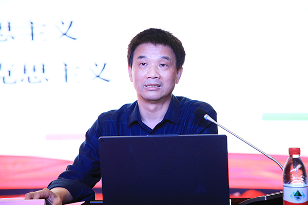马克思主义学院院长林兴发教授为“青马班”学员讲授开班第一课。刘恒 摄