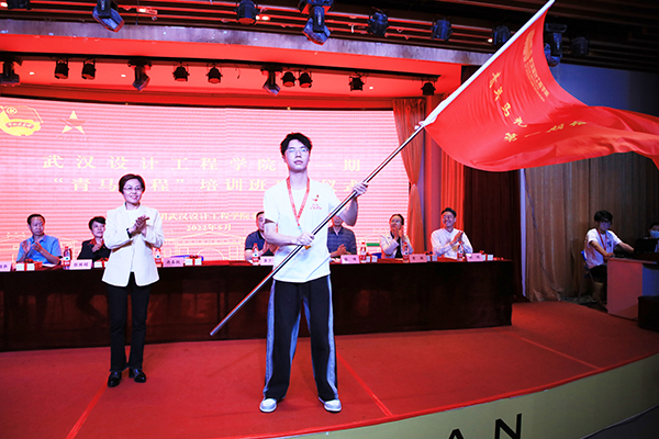 校党委书记冉春桃为第一期“青马工程”培训班授旗。刘恒 摄