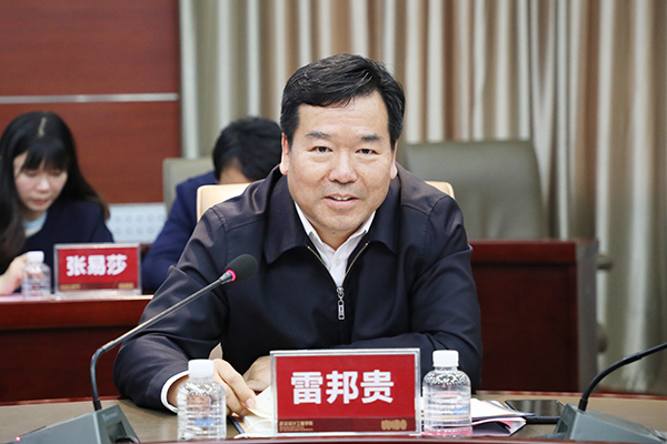 雷邦贵对学校的办学成果给予充分肯定。他指出,学校主动服务地方经济社会发展需求,将荆楚传统文化与人才培养有机结合,在党建引领和“大健康、大文创”专业建设上卓有成效。他希望,学校进一步加强办学成果与办学特色宣传,注重人才培养和引进,强化文创、专利成果转化,为服务地方经济做出新的贡献。