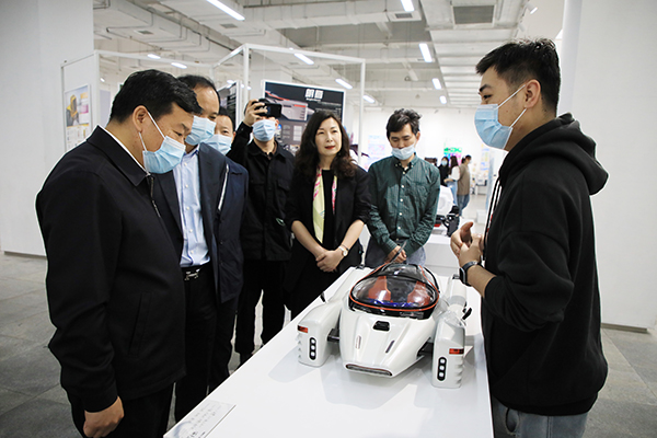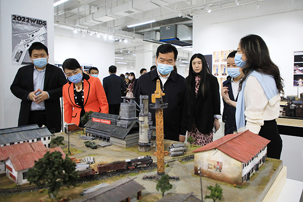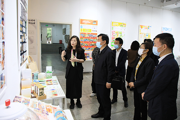 湖北省委统战部副部长雷邦贵参观学校2022届毕业设计作品展。刘恒 摄