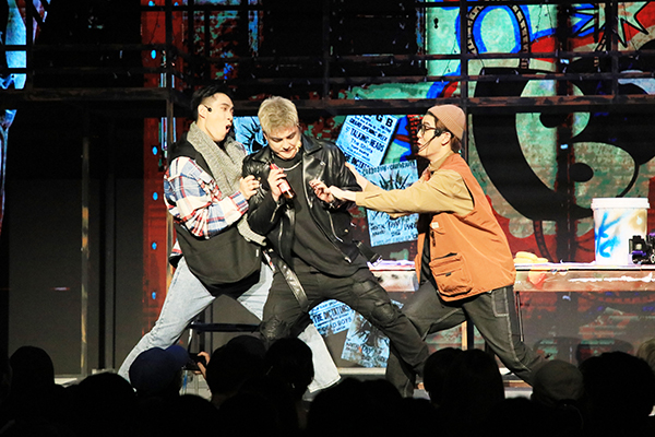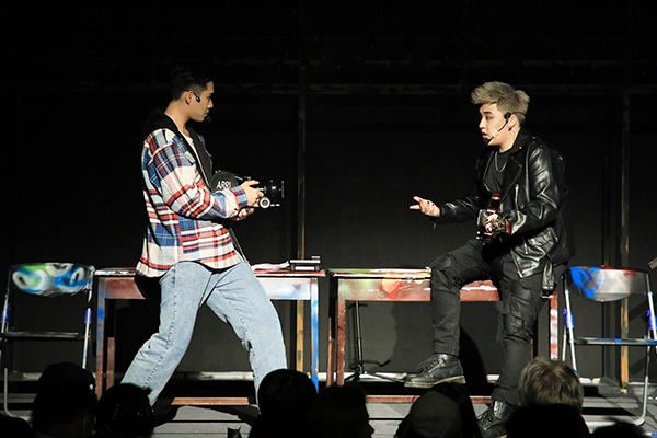 谈到创作难点,剧组同学纷纷表示最大的挑战是剧本改编和曲目演唱。同学们为了让表演更加贴近现场观众,不仅将英文翻译做了本土化处理,还在剧本围读时对原剧内容进行了大量的创造性修改,加入了不少校园元素。“而且因为这部剧是音乐剧,演唱歌曲有26首之多,比一般的作品多了一倍还不止,再加上音乐剧的表演方式需要将表演、台词、舞蹈等技术高度融合,所以整场演出的难度系数非常高。”1801班班长蔡凯铭同学说。