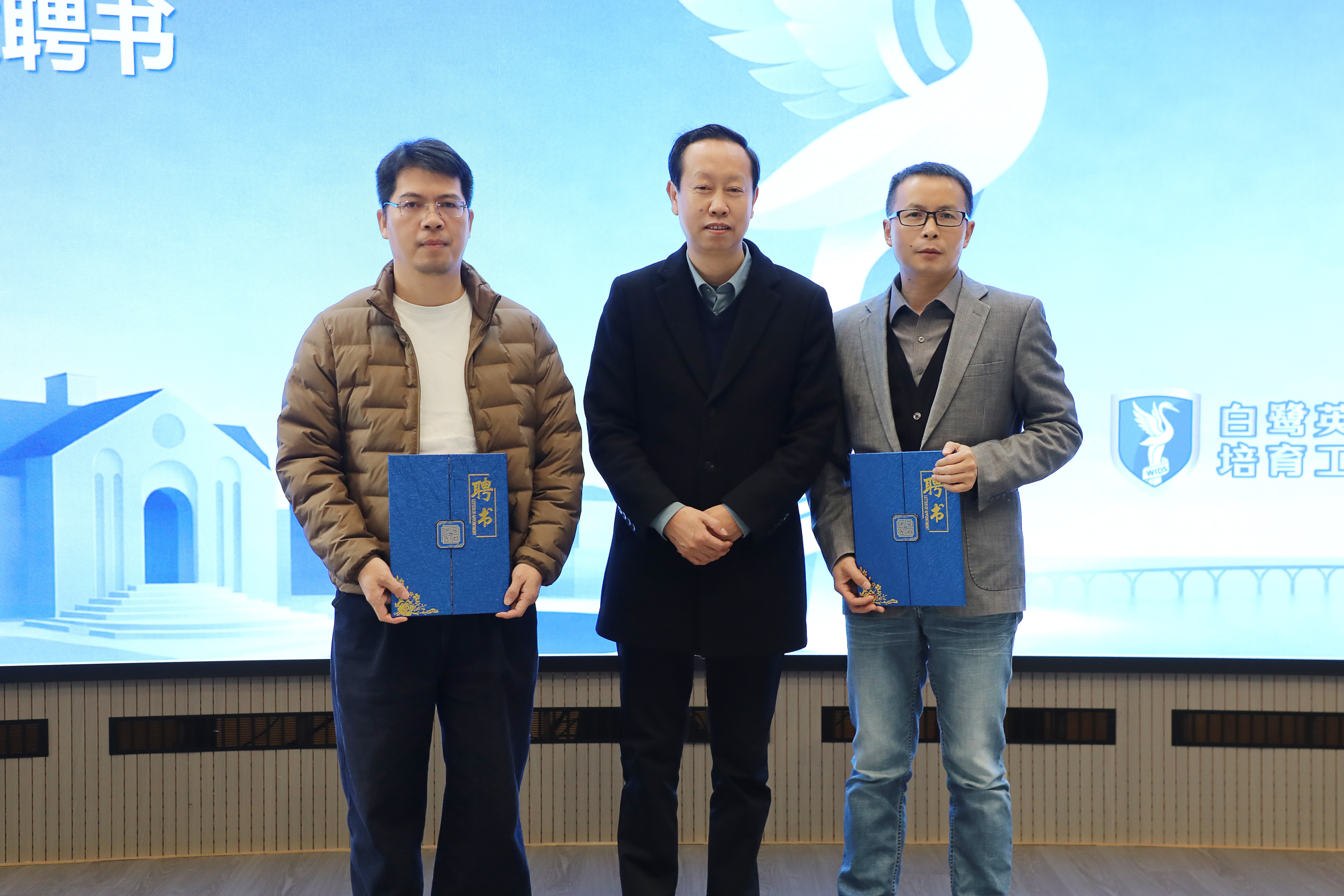 副校长徐拥华为专家颁发武汉设计程学院“白鹭英才”指导专家聘书。刘恒 摄
